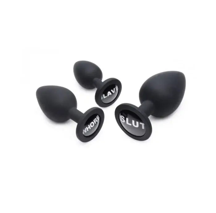 Explore your boundaries with the Dirty Words Anal Plug Set, featuring three sizes of premium silicone booty accessories designed to enhance your anal play experience.